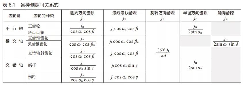 下列表中,列出了各種齒輪的側(cè)隙關(guān)系式。圓錐形齒輪(錐齒輪)的場合,作為徑向側(cè)隙的替代,需要討論軸向側(cè)隙。